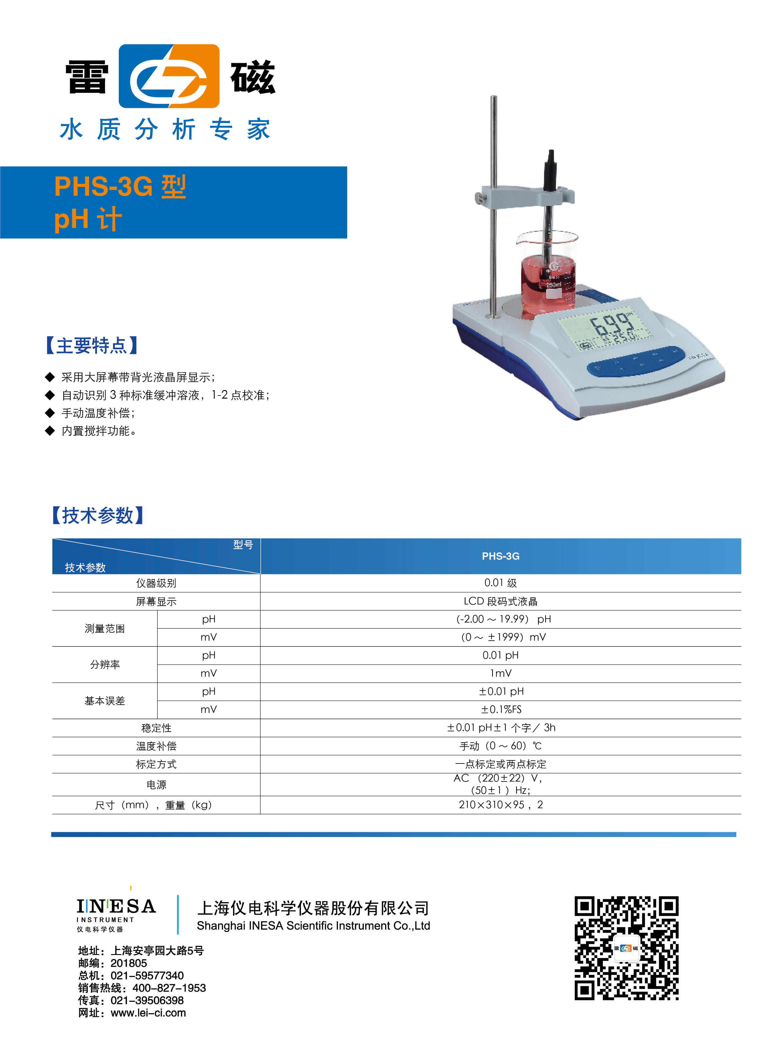 上海雷磁 實驗室PH計 PHS-3G