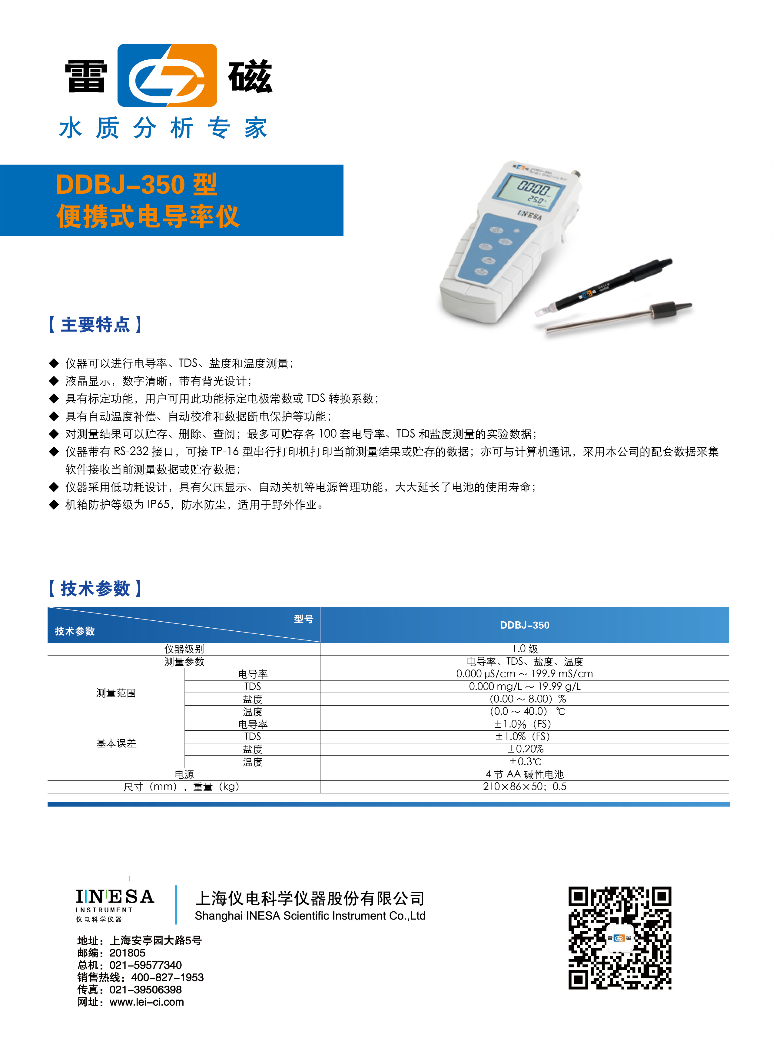 留言板——上海雷磁 便攜式電導率儀 DDBJ-350型