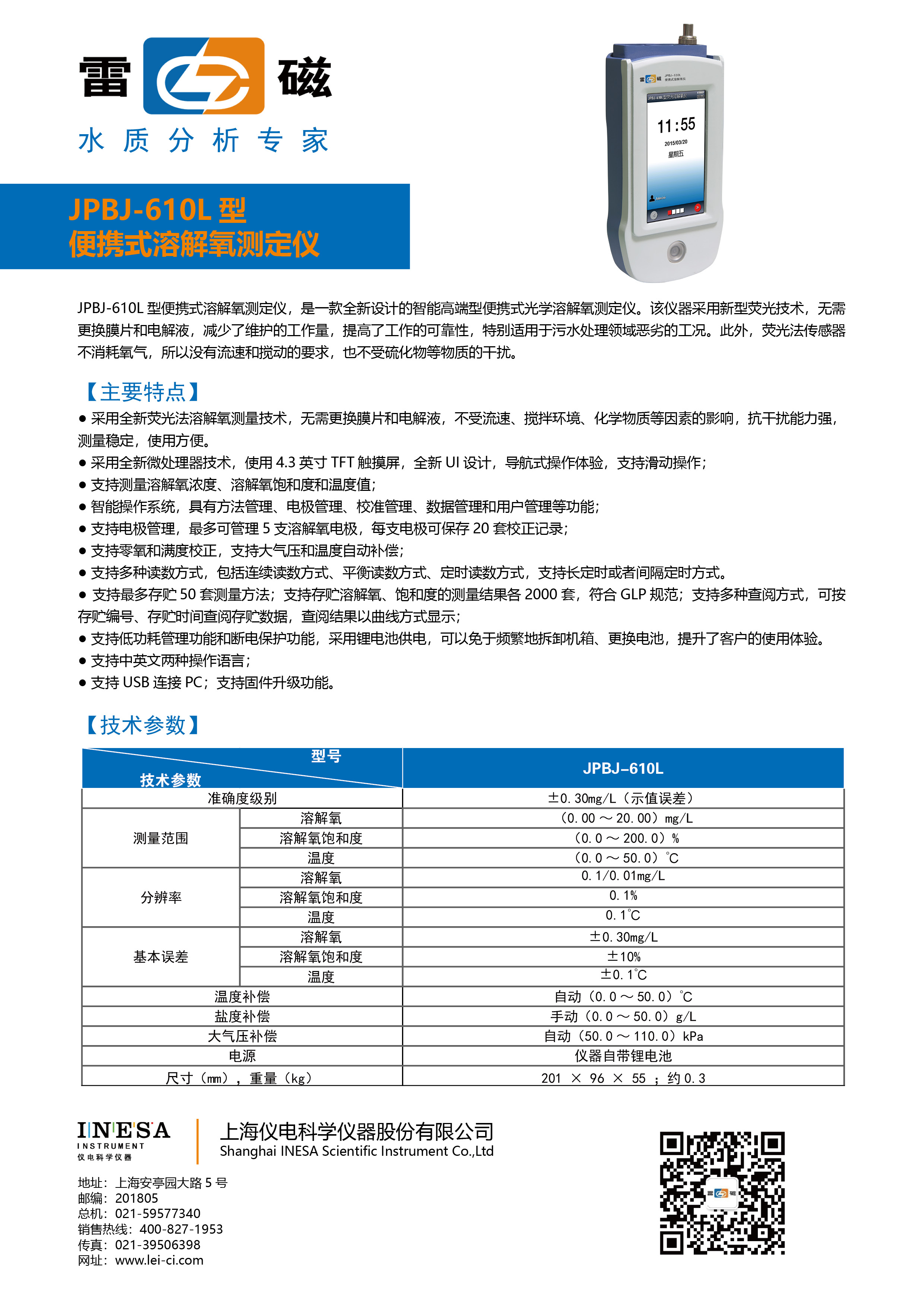 上海雷磁便攜式溶解氧測定儀 JPBJ-610L型